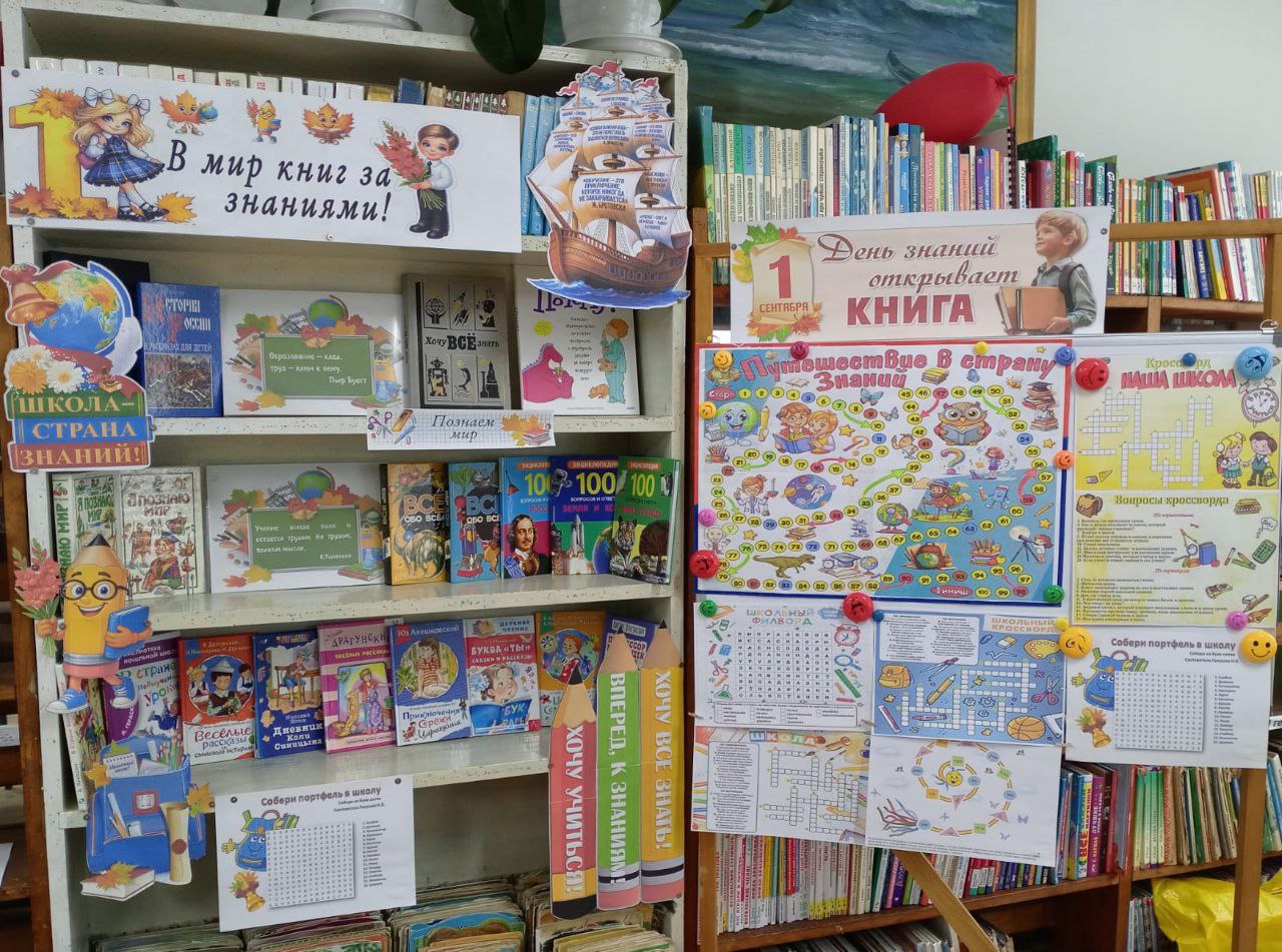 А в поиске знаний нет надежнее источника, чем книга. Это начало всех начал. К этому дню в библиотеке оформлена книжная выставка » В мир книг за знаниями».